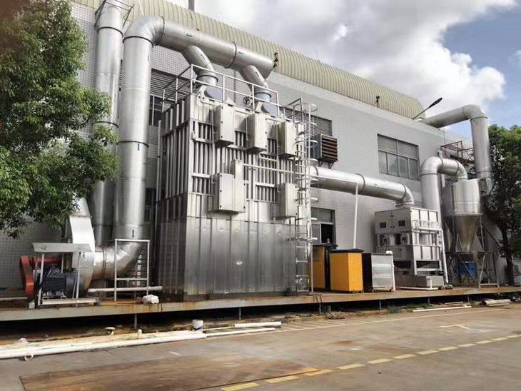 黑烟通过抽风集尘系统收集后,经过卓效气旋洗涤预处理,然后进入湿式静电除尘器,在高压高频电场的作用下将黑烟电离子为正负离子,带电粒子流经复合式高压电场被快速捕捉吸附,从而达到黑烟净化目的。